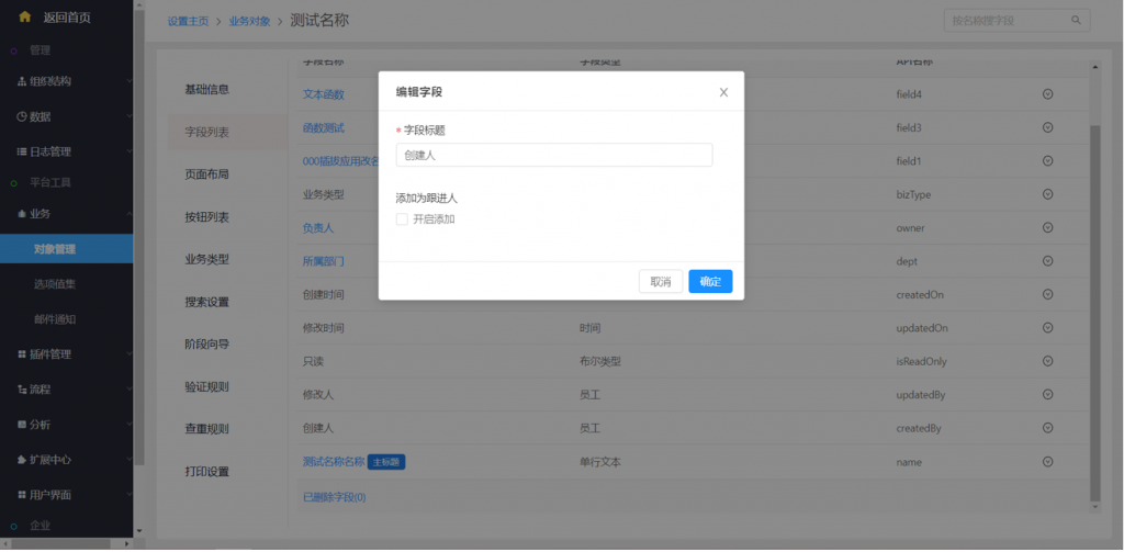 對象列表布局,設置二姐列表功能時,如果選擇的下游對象是本對象,則可以選擇按一節大列表顯示字段配置,也可以自己手動配置