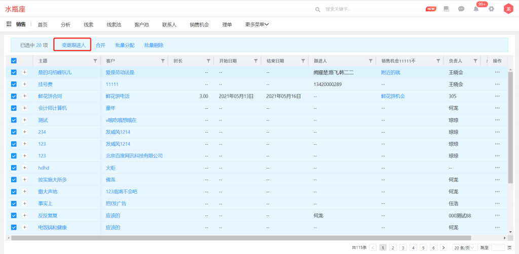 業務對象支持批量增加和刪除跟進人,同時增加“跟進人”字段,與跟進人組件同步,并支持篩選;使用前請先在對象管理中,將“跟進人”字段及“變更跟進人”按鈕的權限進行勾選