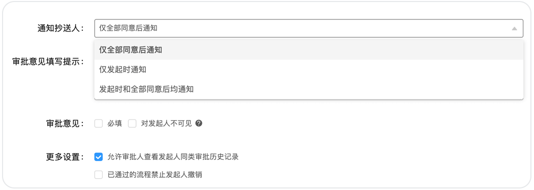 小王的出差報(bào)銷最終通過了,這時還需要抄送給辦公室的行政同事以便日后進(jìn)行成本分析。過去,報(bào)銷審批一經(jīng)發(fā)起就抄送給了行政同事,但有些審批后期撤銷了但沒有通知行政同事,造成后期分析時數(shù)據(jù)存在誤差,現(xiàn)在可以通過設(shè)置“僅全部同意后通知”的抄送模式來避免這一問題。抄送共有3種模式,企業(yè)可根據(jù)實(shí)際場景靈活選擇。