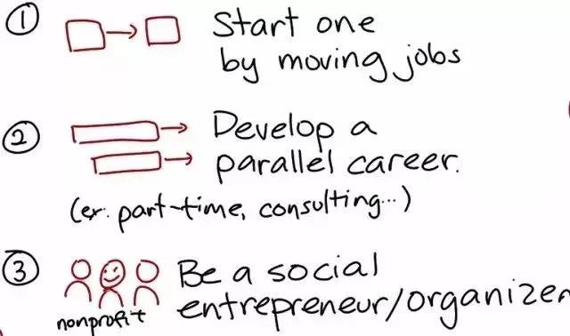 許多人的第一職業(yè)十分成功,他們還會(huì)繼續(xù)從事原有工作。除此之外,他們會(huì)開創(chuàng)一項(xiàng)平行的工作,通常是在非營(yíng)利機(jī)構(gòu)。