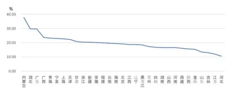 從各地區(qū)建筑業(yè)總產(chǎn)值增長(zhǎng)情況看,所有地區(qū)的建筑業(yè)總產(chǎn)值較上年同期都有不同幅度的增長(zhǎng)。其中,內(nèi)蒙古的增幅最大,達(dá)到了37.93%,此外,湖北、廣東、廣西、青海、寧夏、上海、天津、甘肅、浙江、新疆、安徽等11個(gè)地區(qū)的增幅均超過(guò)20%(圖2)。