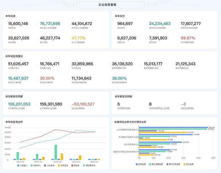 工程老板張總說:“過去做工程雖然產值不大,但是還利潤不錯。但是近幾年政策吃緊,對下的勞務付款自然是不能拖欠的,可上面的甲方回款又不太理想,資金壓力越來越大,真是頭疼!一年項目做下來,哪個項目回款好,哪個項目付款多,我一下子也搞不清楚!”