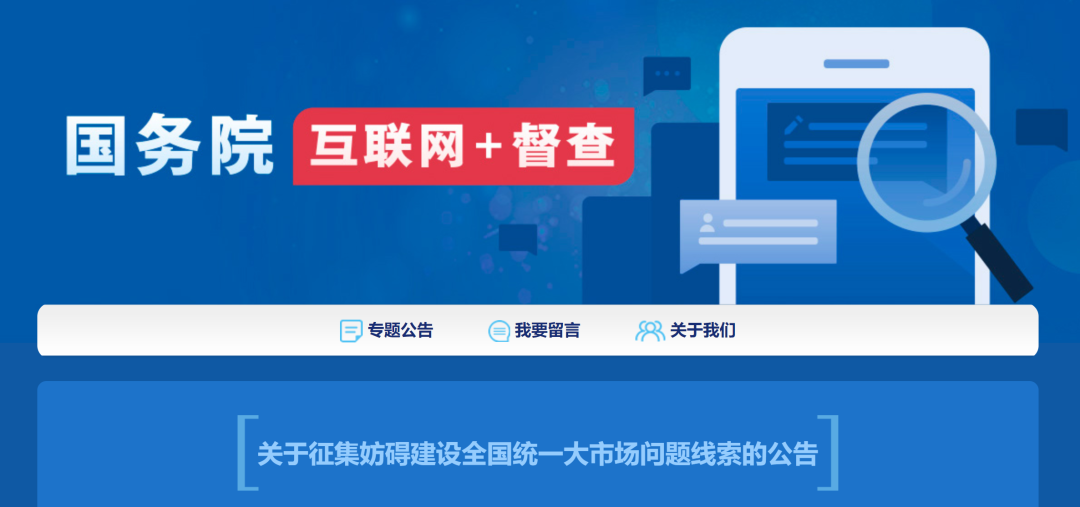9月25日,國(guó)務(wù)院辦公廳發(fā)布《關(guān)于征集妨礙建設(shè)全國(guó)統(tǒng)一大市場(chǎng)問題線索的公告》。公告明確,為貫徹落實(shí)《中共中央 國(guó)務(wù)院關(guān)于加快建設(shè)全國(guó)統(tǒng)一大市場(chǎng)的意見》,推動(dòng)解決妨礙建設(shè)全國(guó)統(tǒng)一大市場(chǎng)的突出問題,國(guó)務(wù)院“互聯(lián)網(wǎng)+督查”平臺(tái)從即日起面向社會(huì)征集七個(gè)方面的問題線索和意見建議: