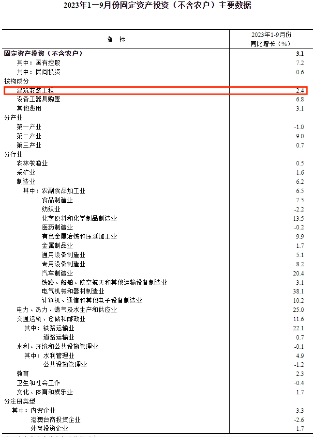 前三季度,全國固定資產(chǎn)投資(不含農(nóng)戶)375035億元,同比增長3.1%;扣除價(jià)格因素影響,同比增長6.0%。