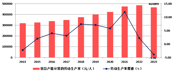 圖8  2014-2023按建筑業總產值計算的建筑業勞動生產率及增速