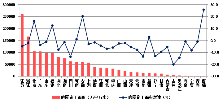 (八)25個地區房屋建筑施工面積下降  瓊、藏房屋建筑竣工面積增速顯著