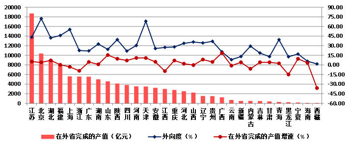(三)23個地區在外省完成產值保持增長  桂、魯增速超過15%