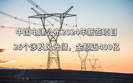 中國(guó)電建公布2024年新簽項(xiàng)目,26個(gè)涉及風(fēng)光儲(chǔ),金額近400億